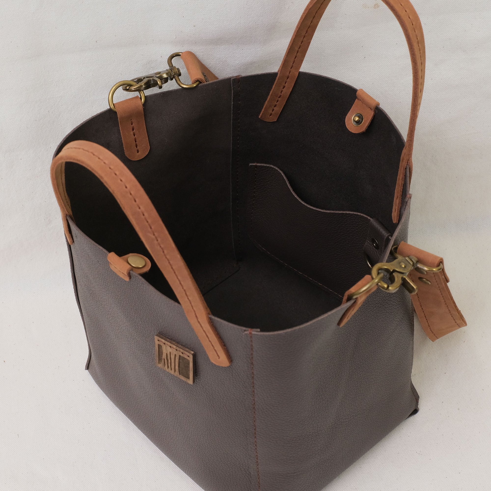 3-Panel Two-way Tote in pebbled warm gray