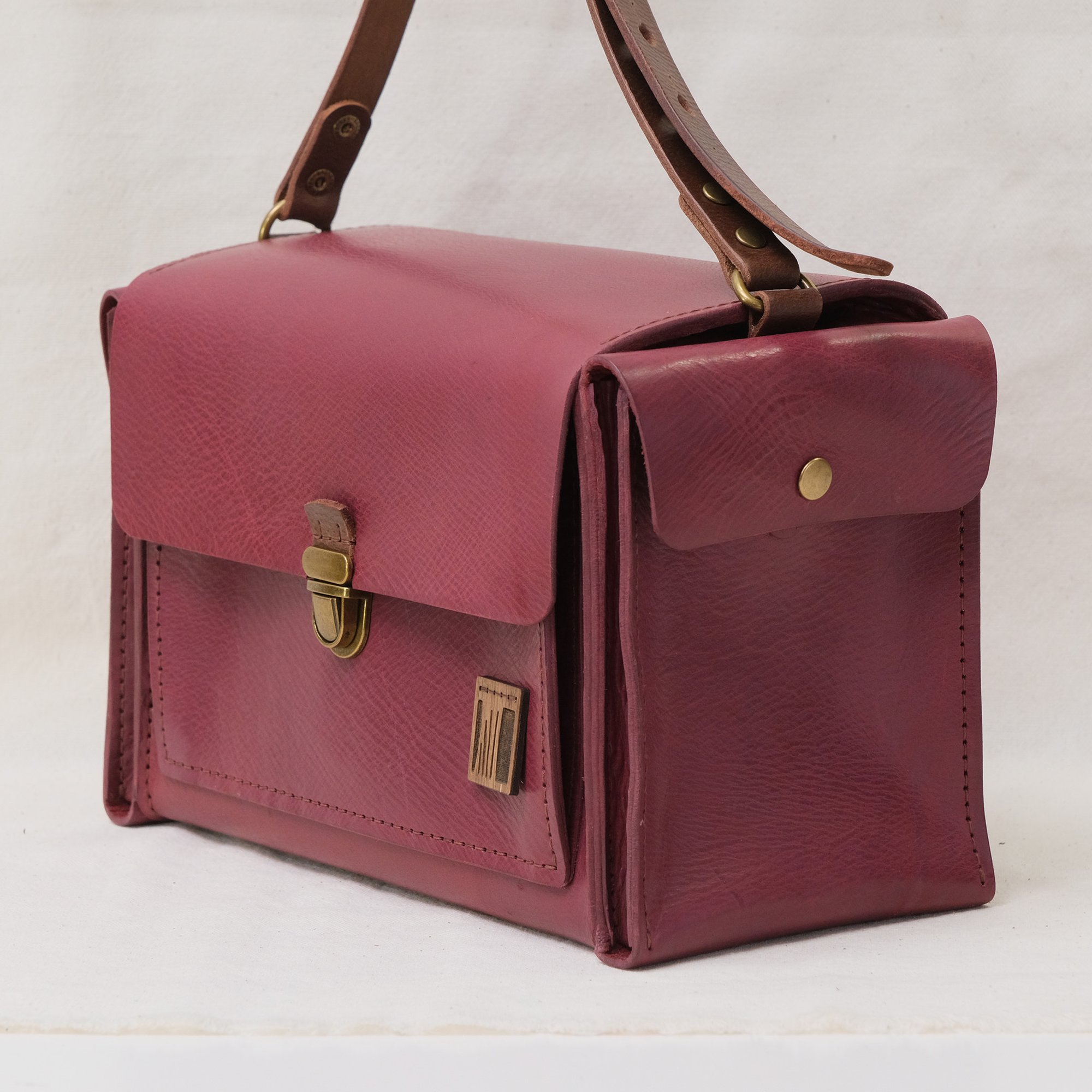 A tiny box, but mighty! This big brother of the Tiny Box sports two generously gusseted side pockets to carry extra things. Comfortably fits an A5 notebook.