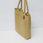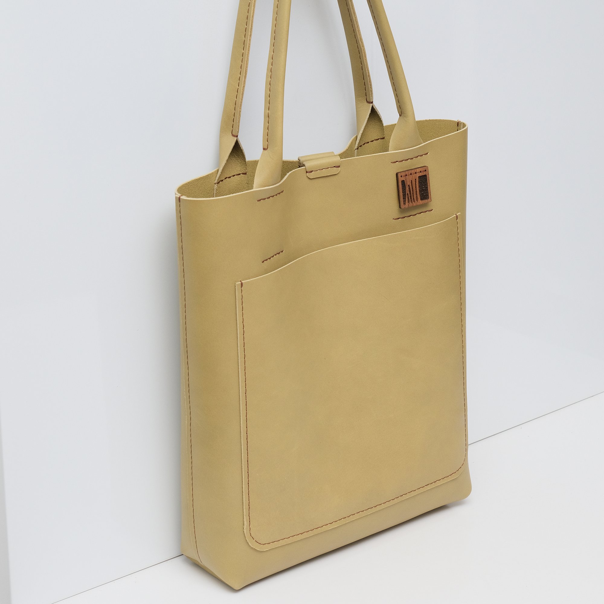 Leather: creamy avocado colored leather with a smooth and polished finish