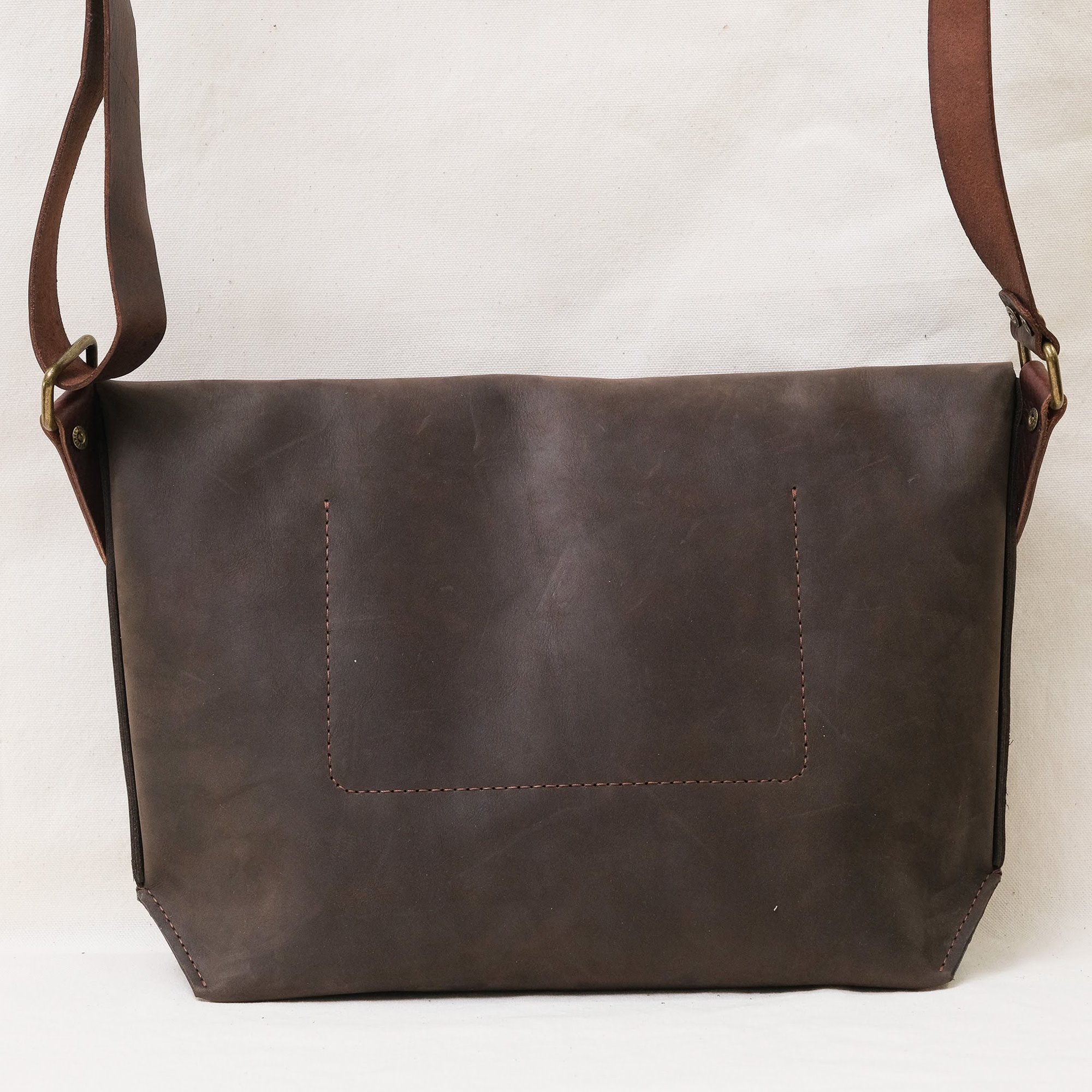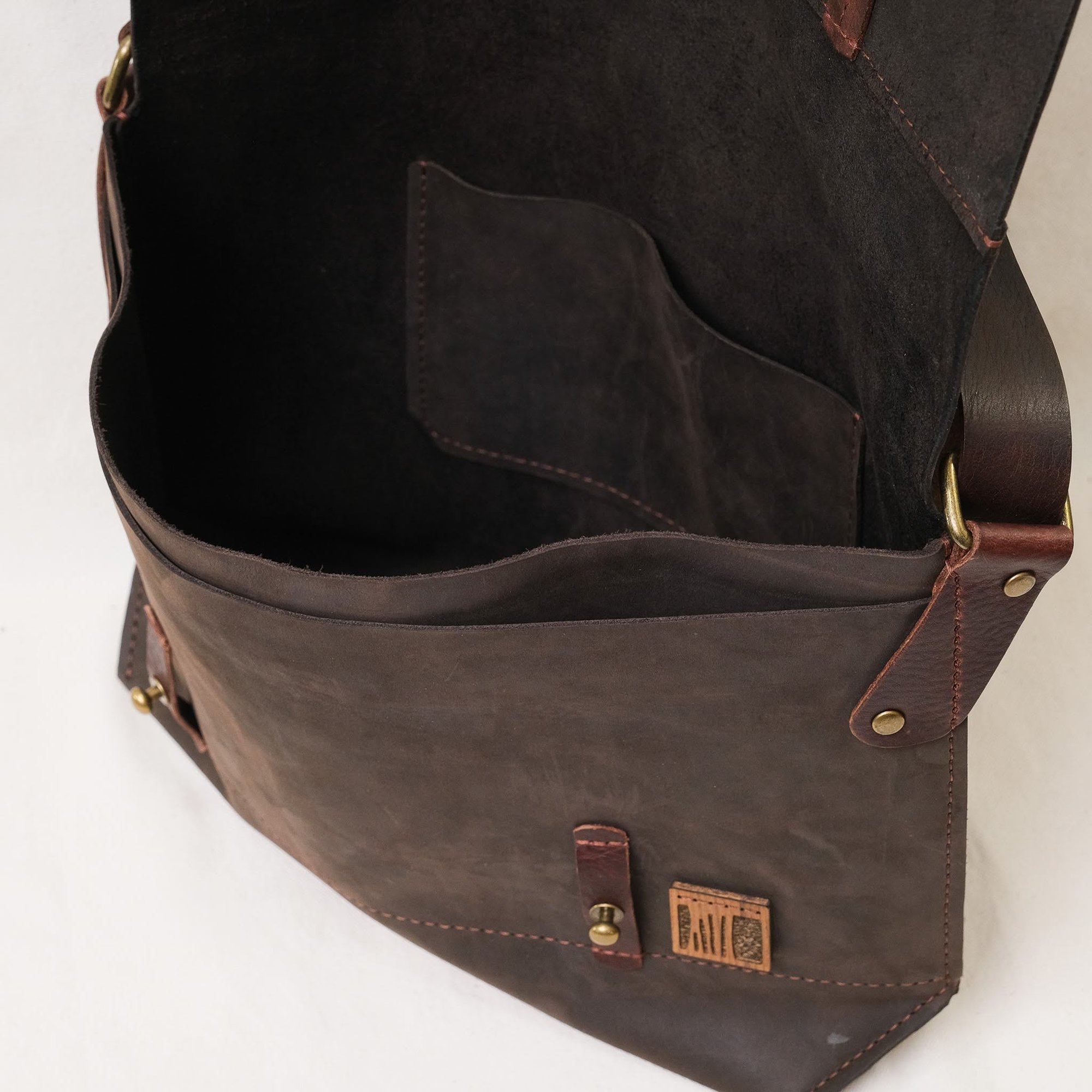 body - dark chocolate brown leather with a smooth and semi-polished finish