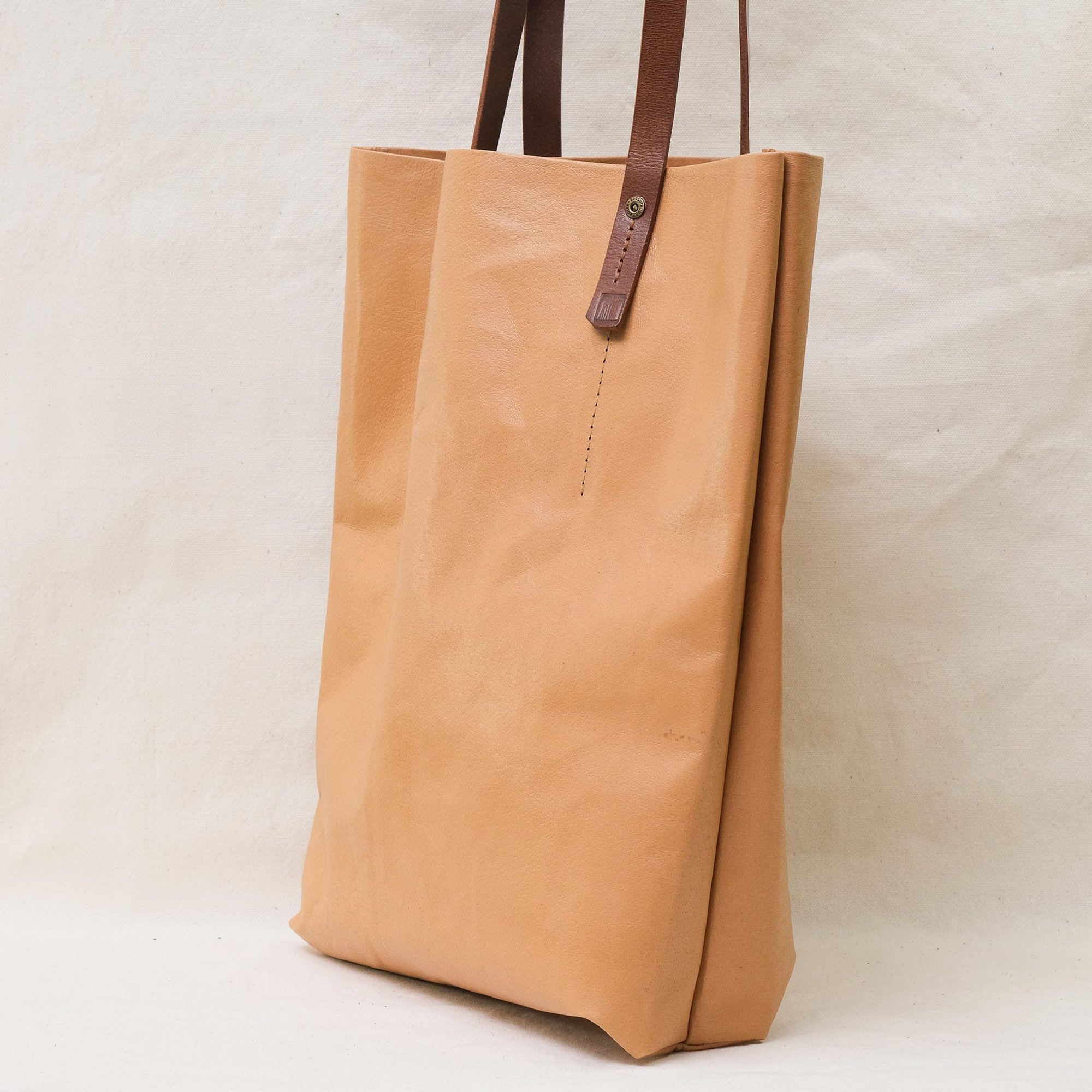 This tote is made with pig skin, that's super light and super soft yet very strong! Perfect as a travel companion, it can be rolled or folded and weighs close to nothing.
