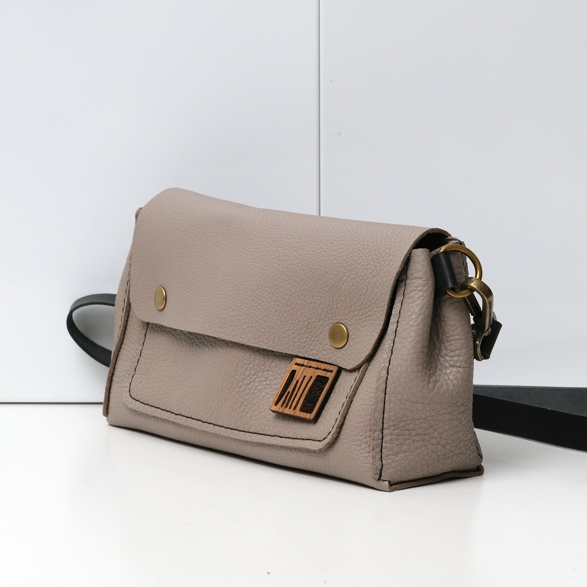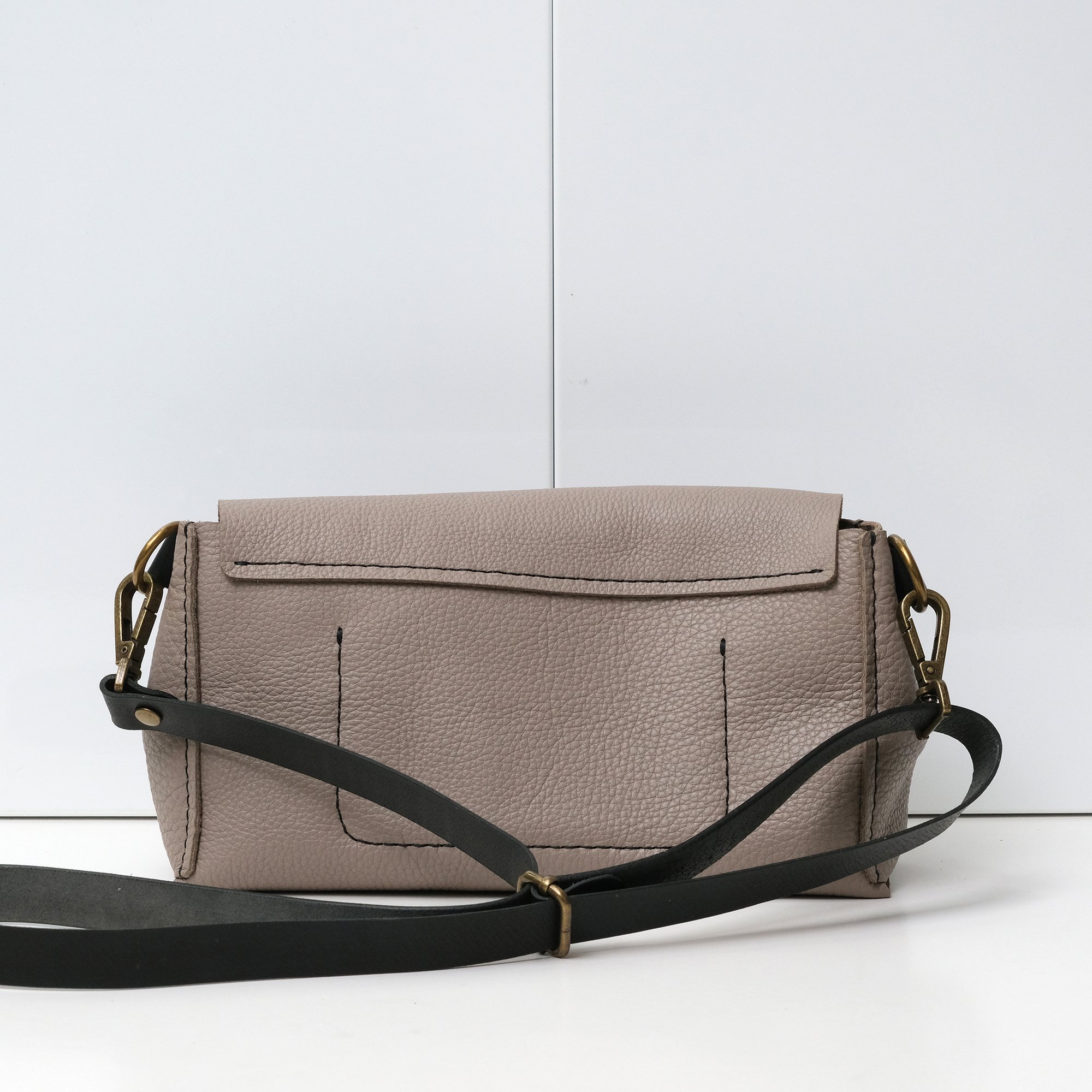 This new shape is an experiment on softness and structure. Can be worn as a sling and a fanny/belt bag too. Comes with a front pocket, inside and a double snap lock.