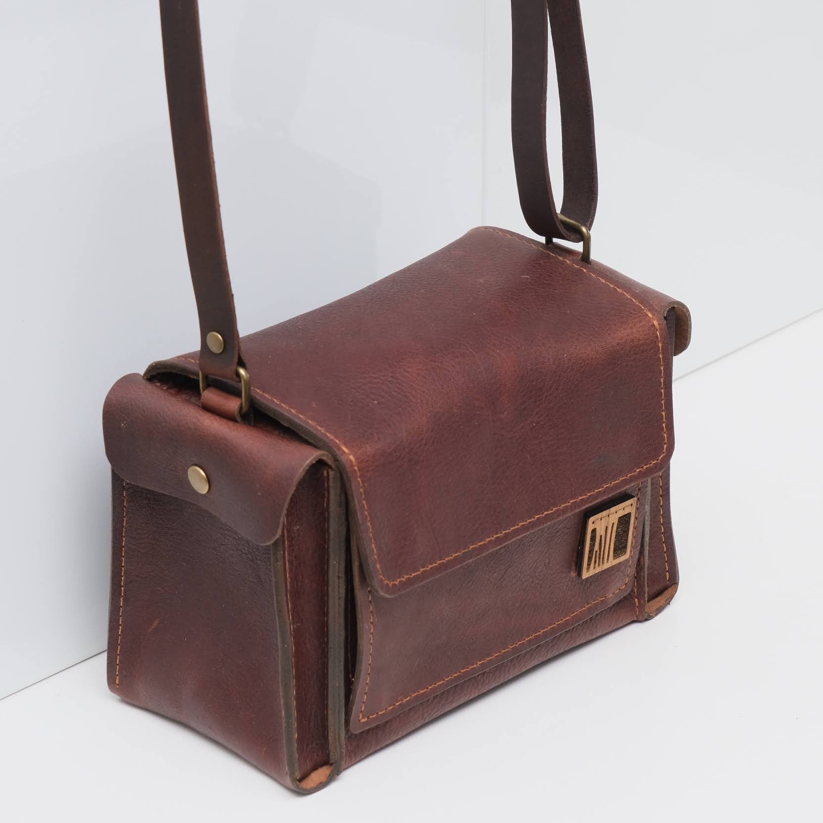 body: vintage brown toned leather with a semi-polished finish