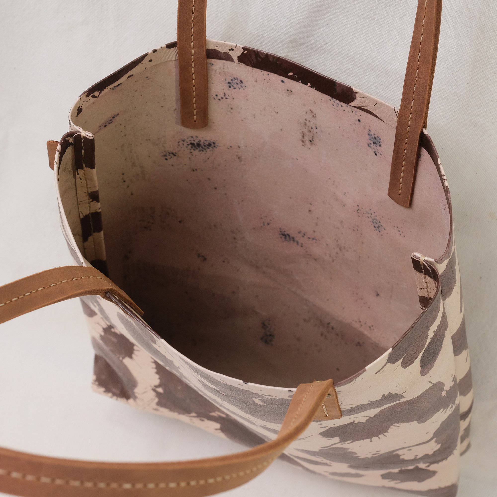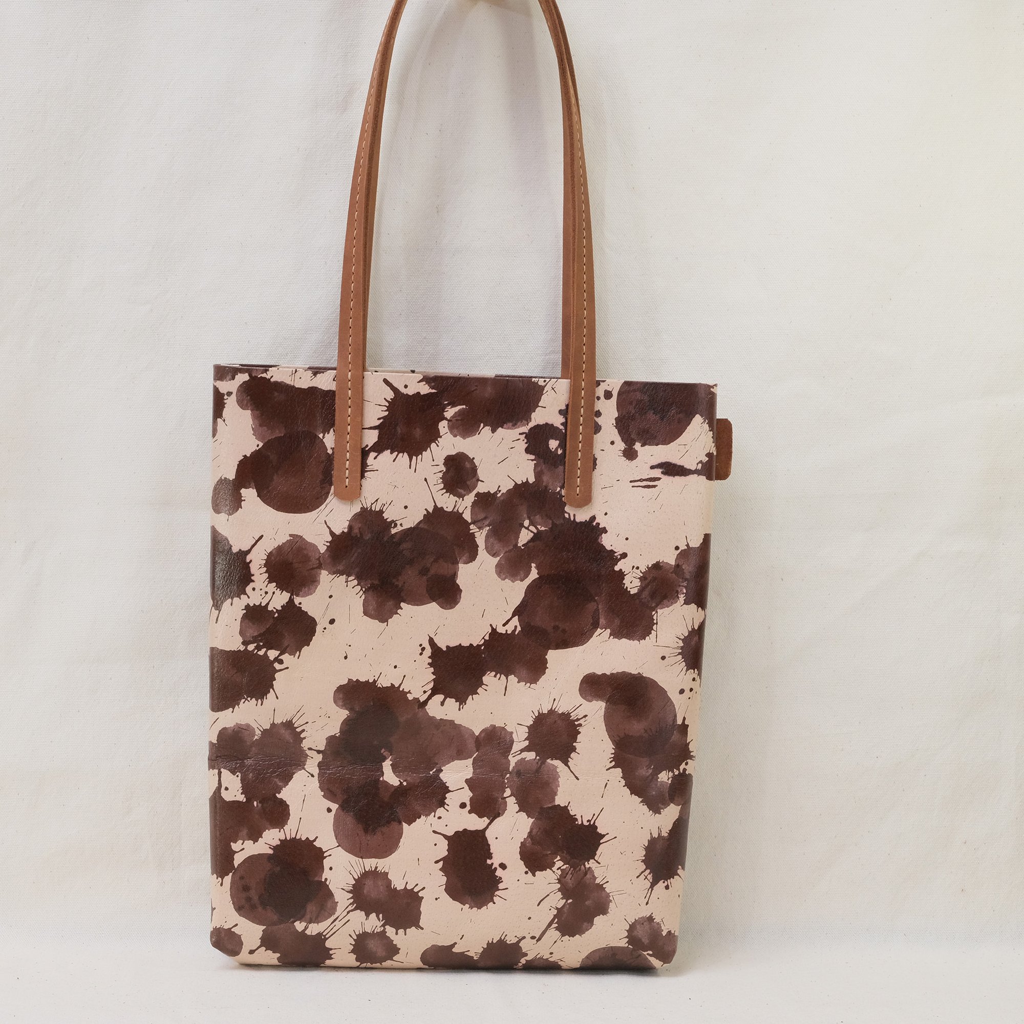 This Paint Series is a happy experiment on pigment and pattern. These are hand-printed on natural toned pigskin leather and then sealed. No two will ever be alike! How fun is that? It will eventually develop a patina with use.