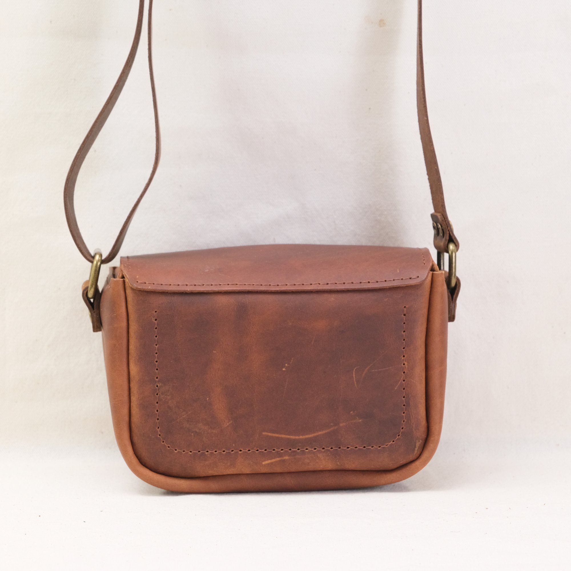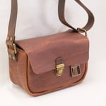 body: vintage brown leather with a smooth and semi-polished finish