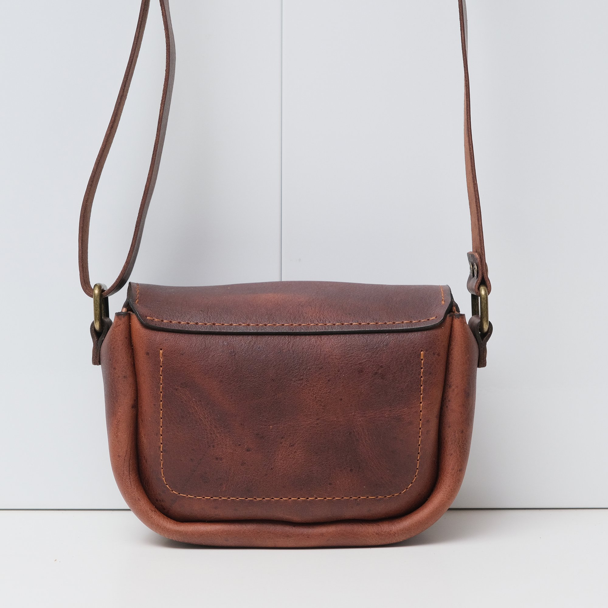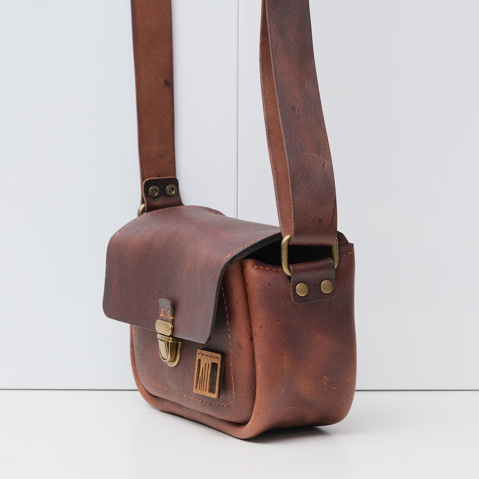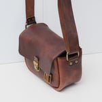 body: vintage reddish brown leather with a polished finish