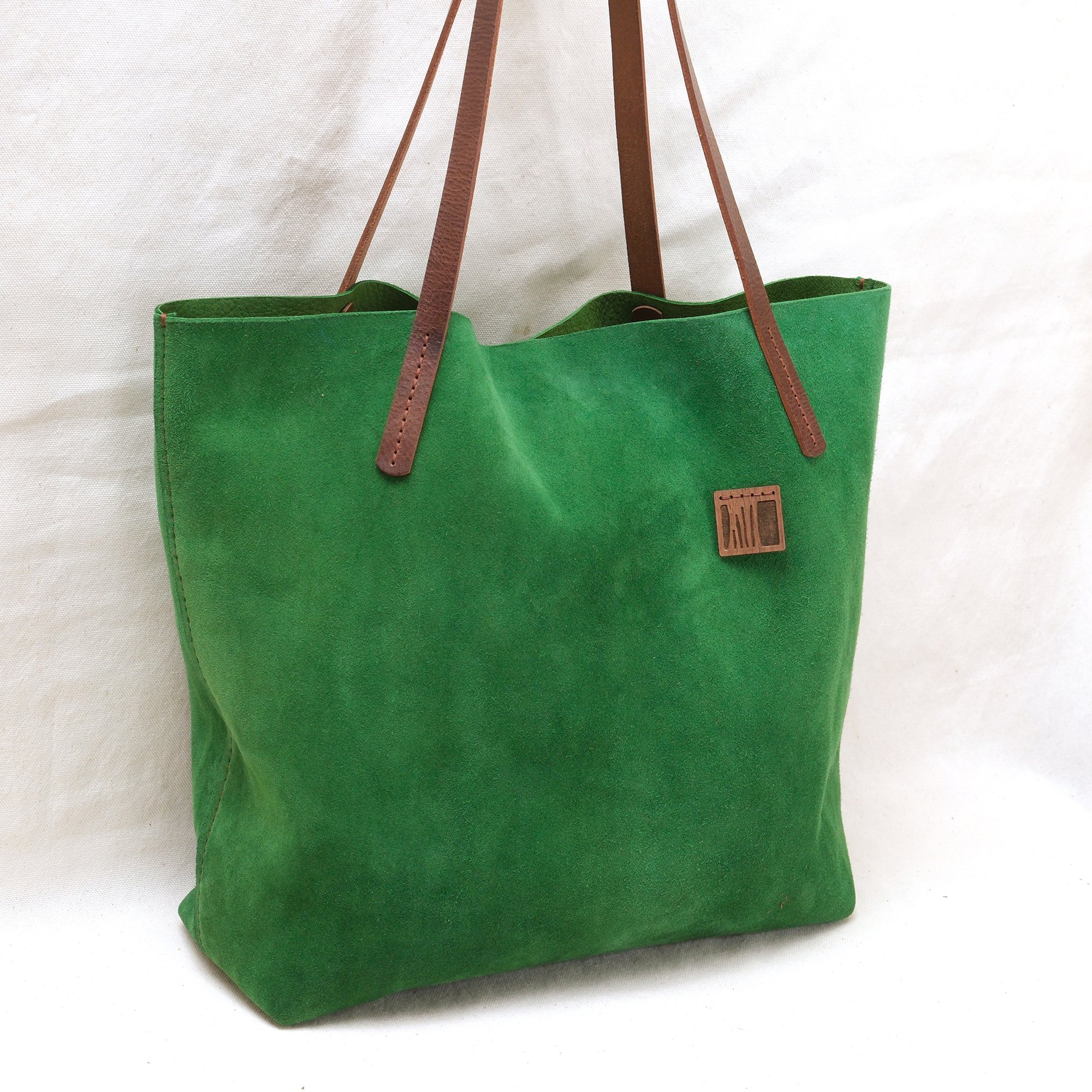Slouchy Suede Tote in happy green