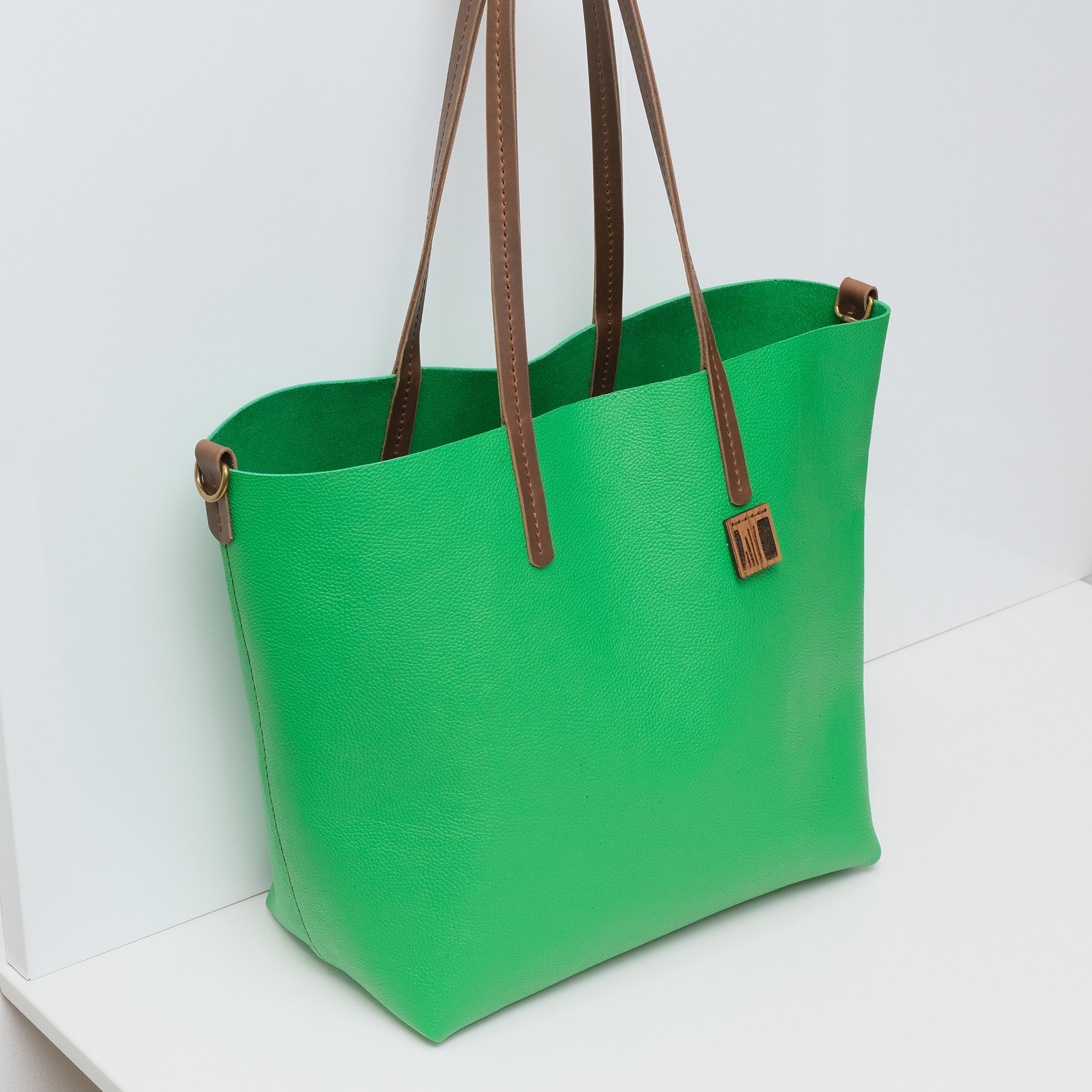 Slouchy Wide Tote in pebbled happy green