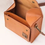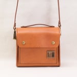 Comes with a gusseted front pocket and snap locks. Strap width is 1.75cm and length is fixed.