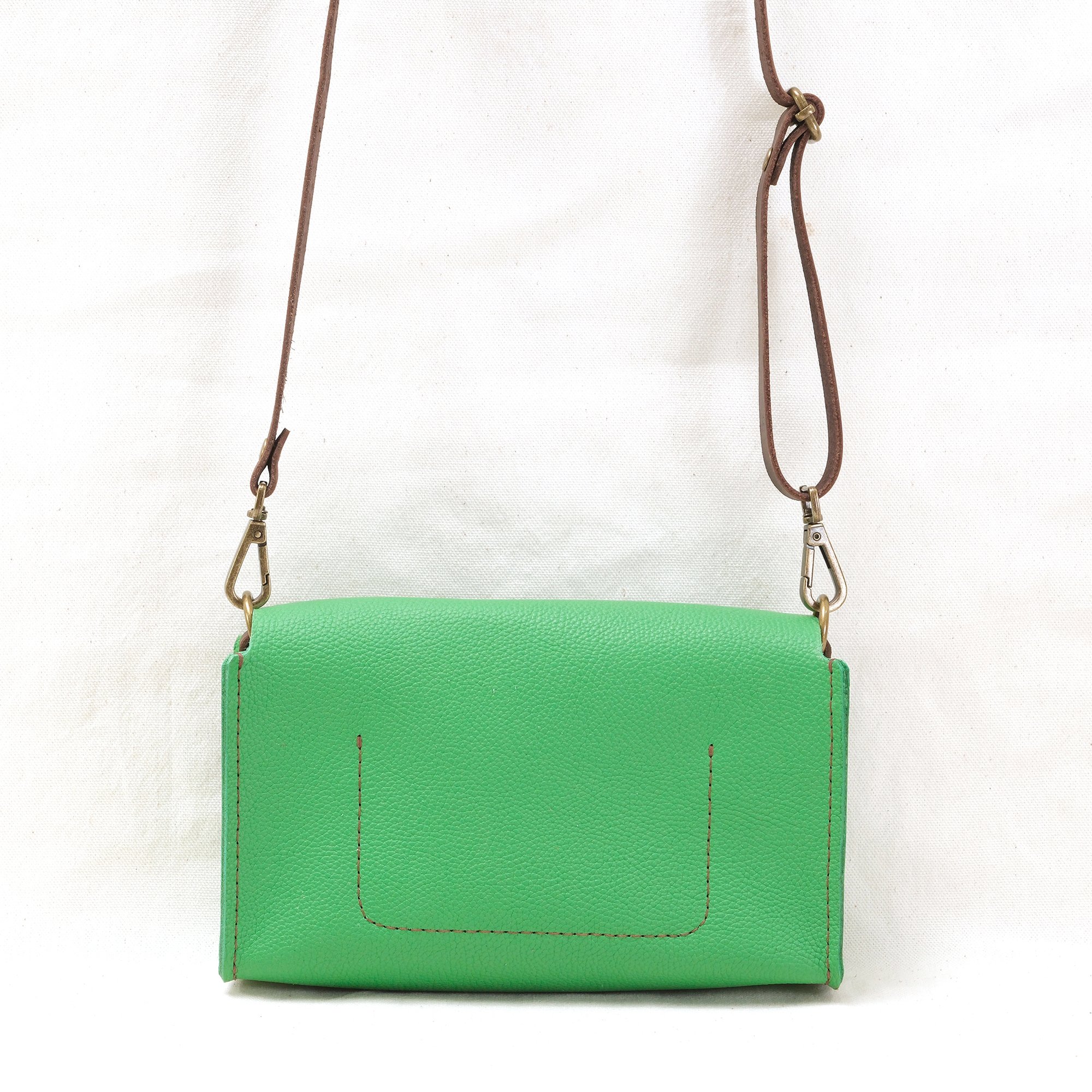 A sling for those no nonsense errand days, this time a bit wider! This piece may be used as a clutch or as a cross-body sling. Comes with an inside pocket